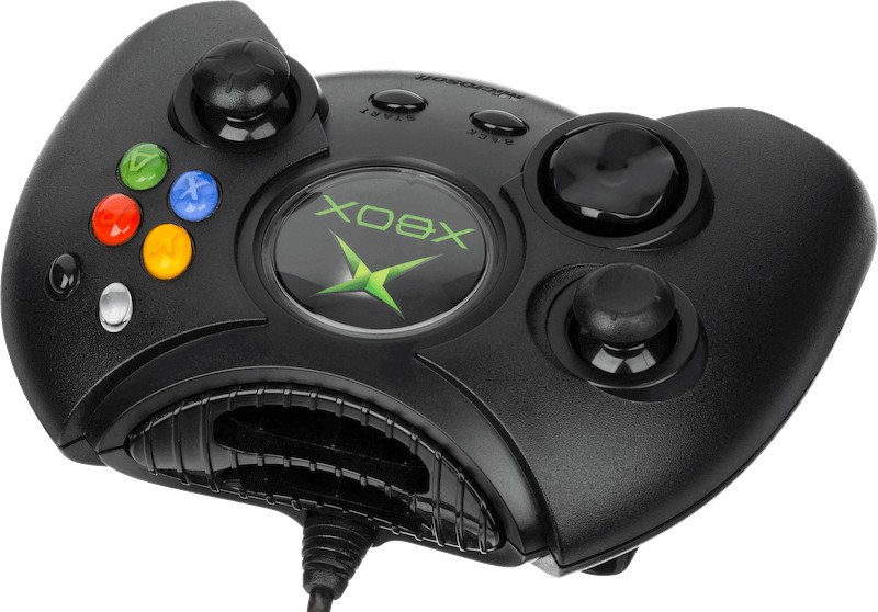 La Xbox est livrée avec une manette volumineuse appelée The Duke, son ensemble d'entrées n'est pas différent de ce que les autres concurrents avaient… sauf pour l'utilisation de circuits analogiques (8 bits de large) sur les boutons de face, permettant aux jeux de détecter des 'demi-pressions' de la plupart des boutons. D'un autre côté, le Duke a été tellement critiqué que Microsoft l'a remplacé par une nouvelle révision appelée Controller S quelques mois après la sortie de la console.