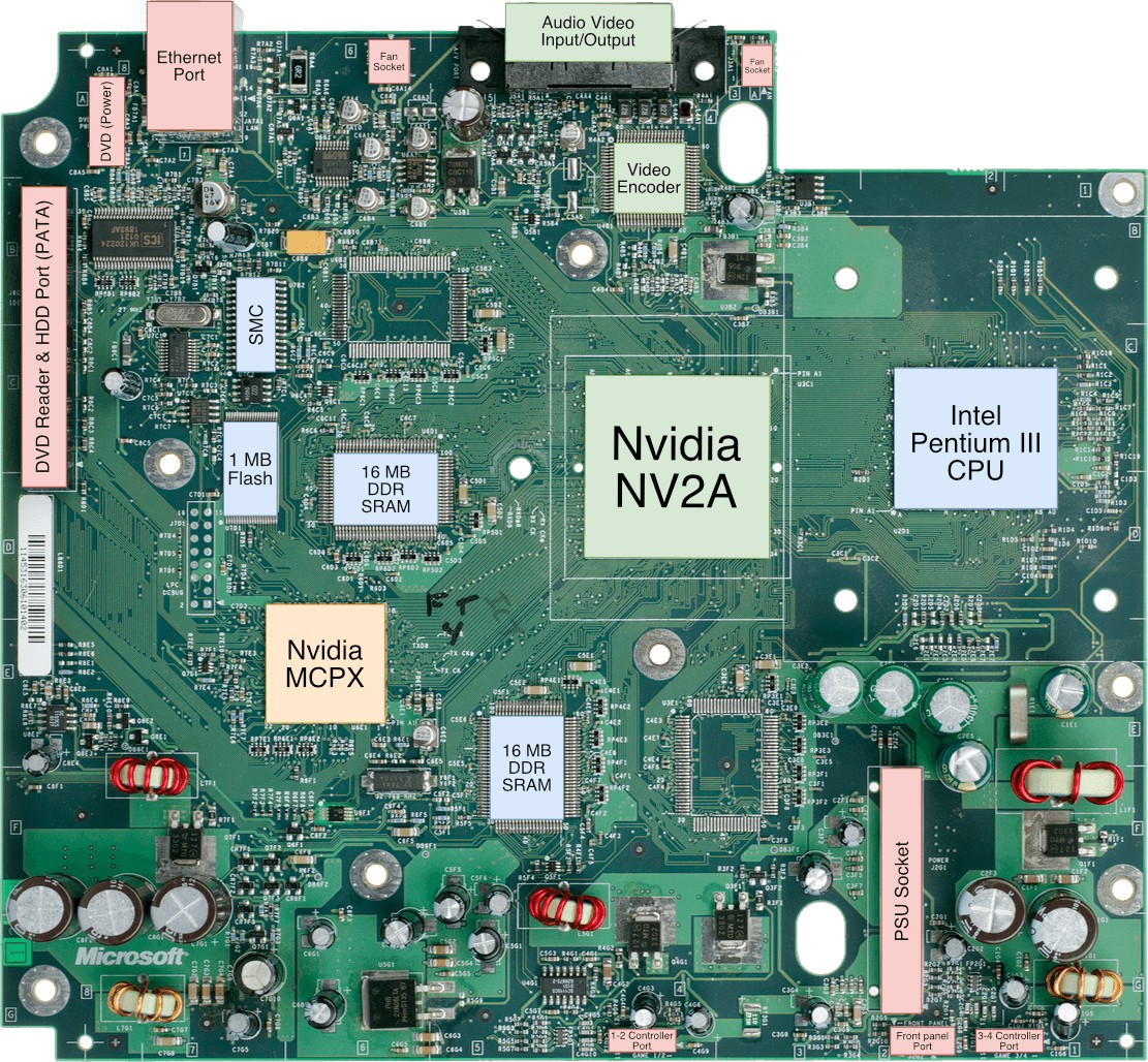 Le processeur inclus dans cette console est une version légèrement personnalisée du célèbre Intel Pentium III (un CPU standard pour ordinateurs) fonctionnant à 733 MHz. Avec cela, on peut supposer que cette console n'est qu'un PC en coulisses… Je ne vous donnerai pas la réponse, mais je promets qu'à la fin de l'article, vous serez en mesure de parvenir à votre propre conclusion.